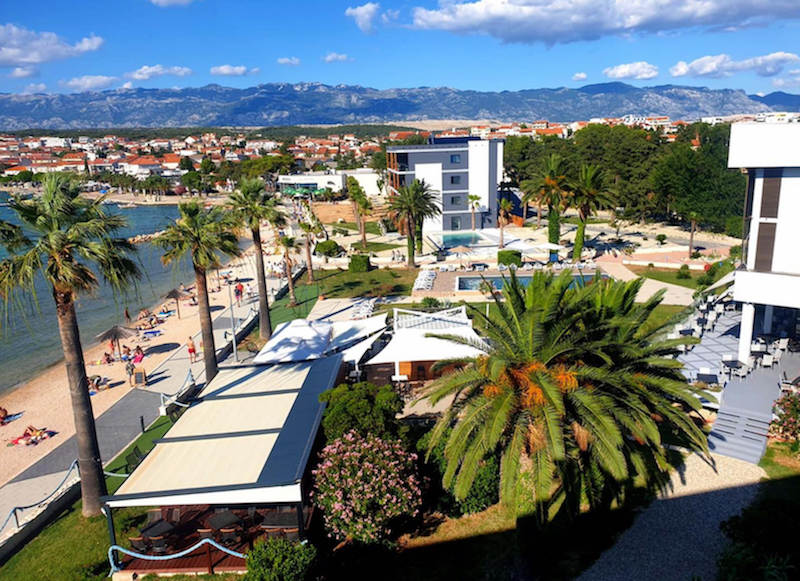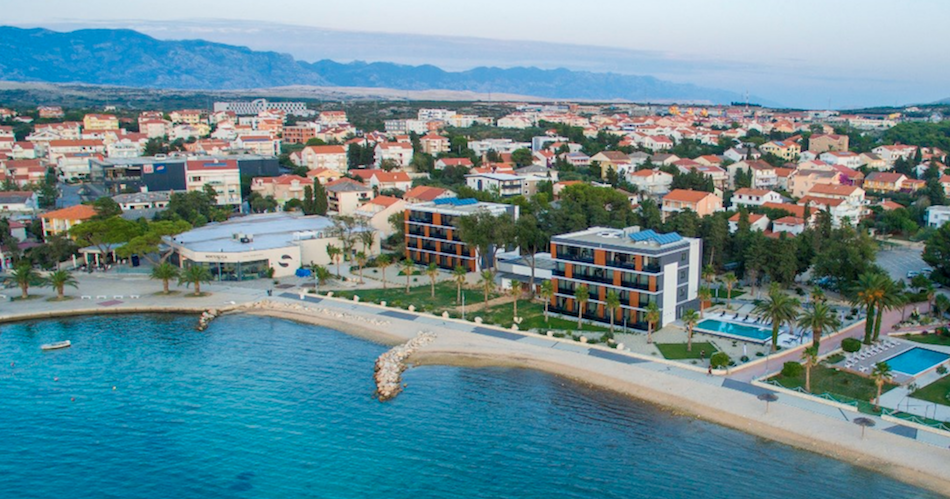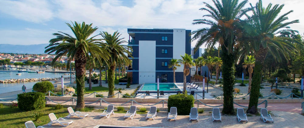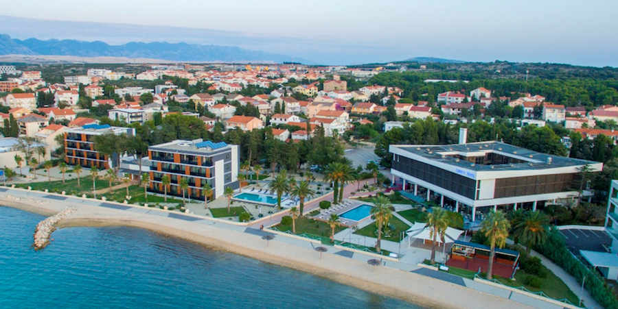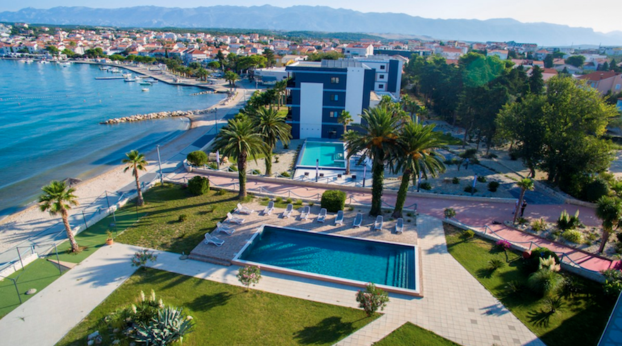 Plážštrkovo-kamienková s upravenými plochami na slnenie, ležadlá a slnečníky na pláži (za poplatok), cocktail bar na pláži, známa pláž Zrće cca 3 km od hotela, jedna z najkrajších pláží ostrova - pláž Straško cca 2 km,
