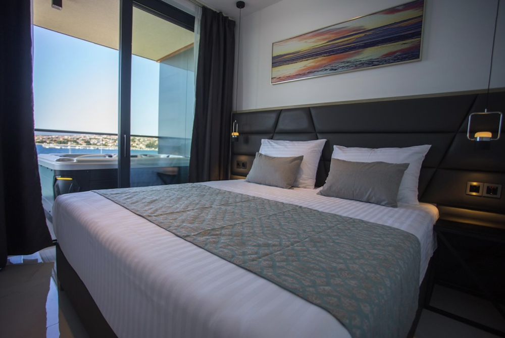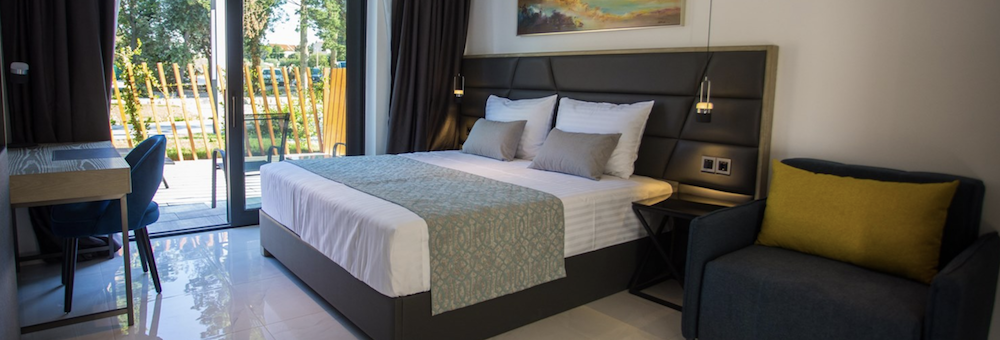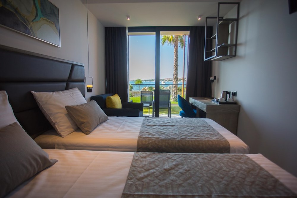 UbytovanieTypy izieb: dvojlôžkové izby orientované na parkovú stranu, možnosť jednej alebo až dvoch prísteliek (rozkladacia pohovka), dvojlôžkové izby orientované na morskú stranu, možnosť jednej alebo až dvoch prísteliek (rozkladacia pohovka), jednolôžkové izby, suity s vírivkou (info v CK), Vybavenie izieb: LCD TV/SAT, telefón, WiFi, klimatizácia, minibar, trezor, vlastné sociálne zariadenie, sušič na vlasy, balkón, izby prispôsobené pre handicapované osoby (na vyžiadanie), Vybavenie hotela: centrálna recepcia, WiFi pripojenie, výťah, reštaurácia s terasou s výhľadom na more, dva vonkajšie bazény, priestranná slnečná terasa s ležadlami a slnečníkmi (zdarma), „lounge“ bar, kasíno bar, sushi bar, parkovisko (zdarma),