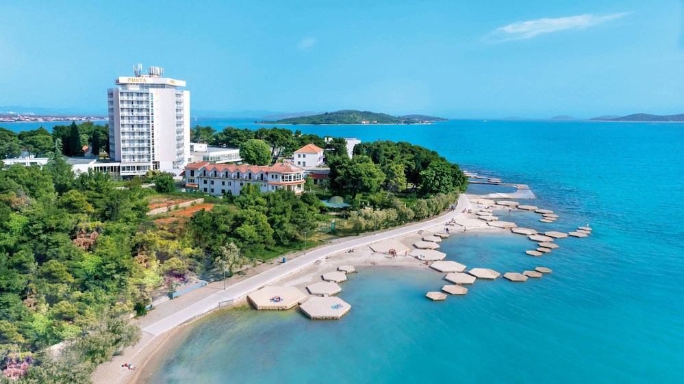 Hotel Punta Welness & SPA sa nachádza v borovicovom lese na rovnomennom polostrove v bezprostrednej blízkosti pláže. Od centra Vodíc je vzdialený len niekoľko minút chôdze po pobrežnej promenáde, na ktorej sa nachádzajú taverny, kaviarne, diskotéky a obchodíky. Vzdialenosti pláž 50 m, centrum 200 m, nákupné možnosti 20 m,