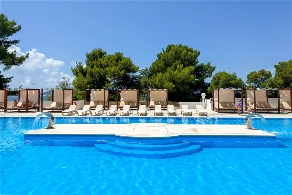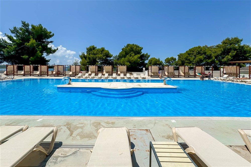 Popis a plážhotelový komplex obklopený mediteranskou zeleňou tvorí hotel Imperial, vilky a depandansy Green a Blue • situovaný priamo pri kamienkovo - štrkovej pláži s pozvoľným vstupom do mora a upravenými plochami na slnenie • pláž je vzdialená asi 50m a od hotela asi 100m • ležadlá a slnečníky na pláži za poplatok