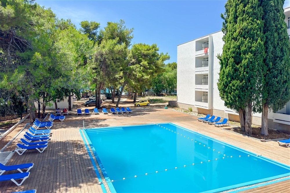 v píniovom háji, na okraji vyhľadávaného rušného letoviska Vodice • cca 1 km od centra mesta