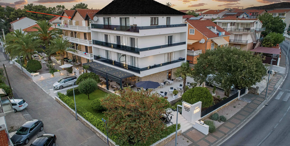 InfoPenzión je situovaný vo východnej časti Vodíc, mimo rušného centra letoviska. Krásne pláže, krištáľovo čisté more, romantické kamenné uličky, rušná promenáda lemovaná palmami, moderná „marina“, ale aj množstvo hotelov, penziónov a apartmánových domov. To všetko sú Vodice. Vzdialenosti pláž 150 m, centrum 700 m, nákupné možnosti 700 m,