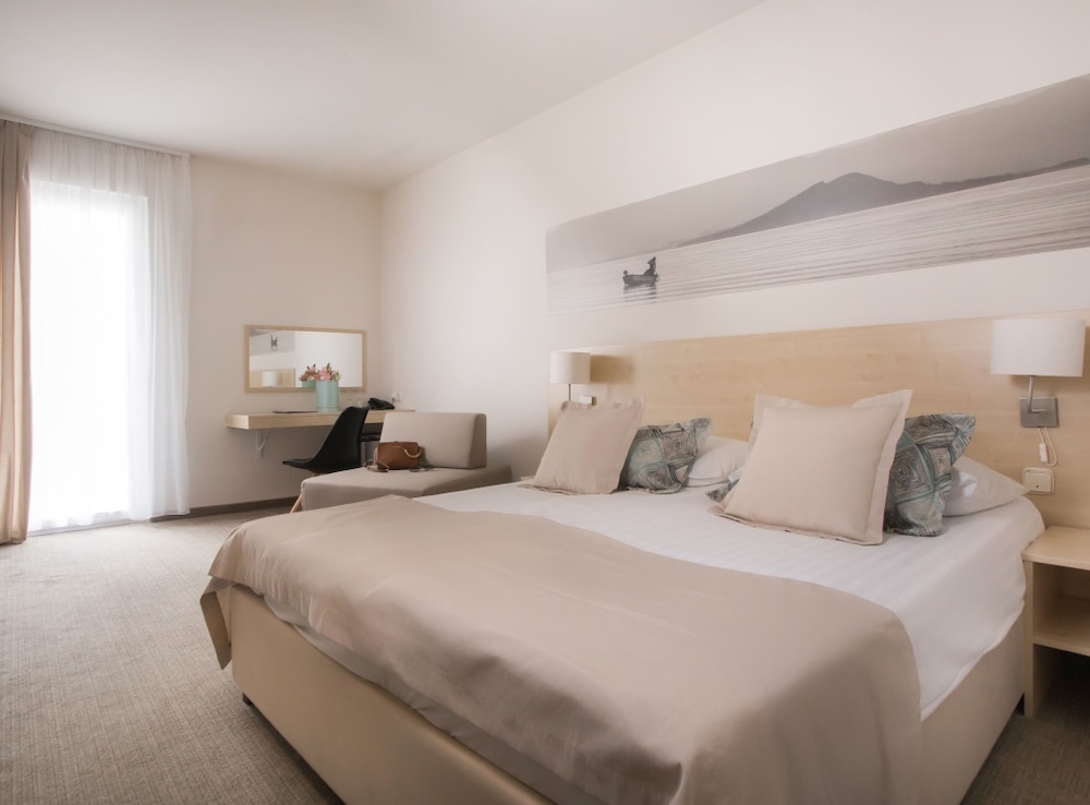 UbytovanieTypy izieb: dvojlôžkové izby Standard bočne orientované na morskú stranu, možnosť jednej prístelky, dvojlôžkové izby Standard priamo orientované na morskú stranu, možnosť jednej prístelky, dvojlôžkové izby Superior, možnosť jednej prístelky, orientované na morskú stranu, Vybavenie izieb: LCD TV/SAT, klimatizácia, WiFi, minibar, trezor, vlastné sociálne zariadenie, sušič na vlasy, balkón, Vybavenie hotela: recepcia, WiFi, reštaurácia Pinia s terasou, a‘la carte reštaurácia Ecclesia, aperitiv bar s terasou, vonkajší bazén s morskou vodou, detský bazén, ležadlá a slnečníky pri bazéne a na upravenej trávnatej ploche (zdarma), bar pri bazéne, La Belle Vie bar pri pláži, obchod so suvenírmi, parkovisko (za poplatok),